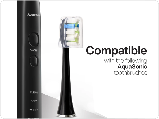 AquaSonic's improved ProFlex Brush heads offer improved plaque removal with precisely angled bristles with alternating hard and soft areas that are gentler on gums and slightly harder on teeth.