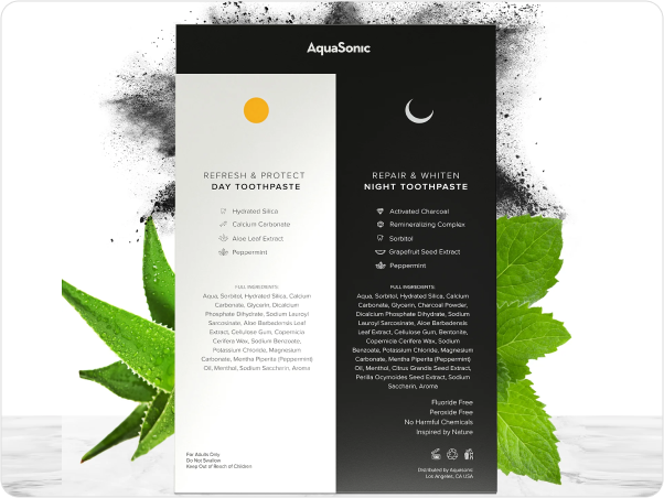 Level up your smile with AquaSonic’s Complete Care Toothpaste System featuring unique day and night formulas that give a holistic approach to treating all aspects of oral health.