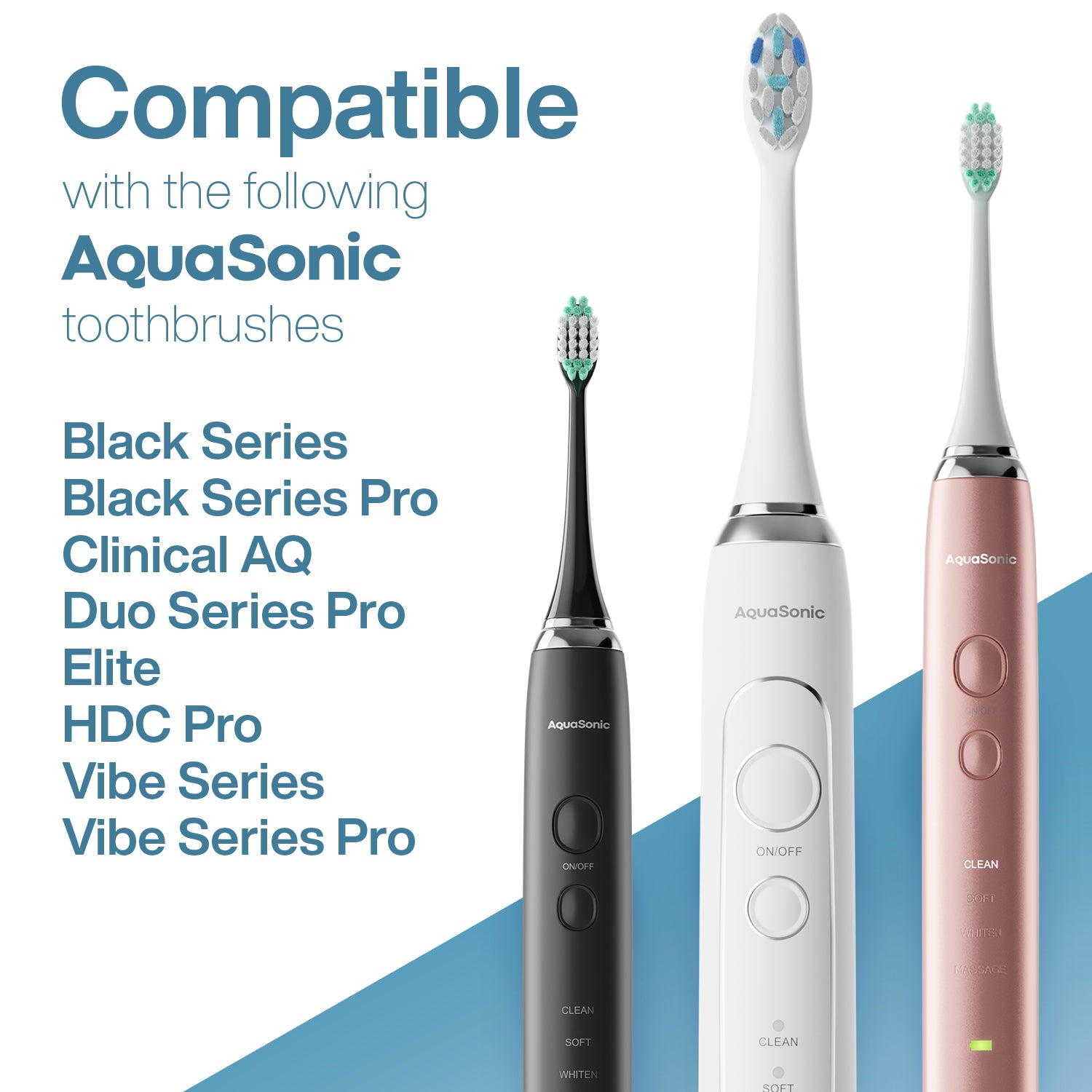 Compatible with Most AquaSonic Toothbrushes: Compatible with Black Series, Black Series PRO, Clinical AQ, Duo Series PRO, Elite, HDC Pro, Vibe Series & Vibe Series PRO.