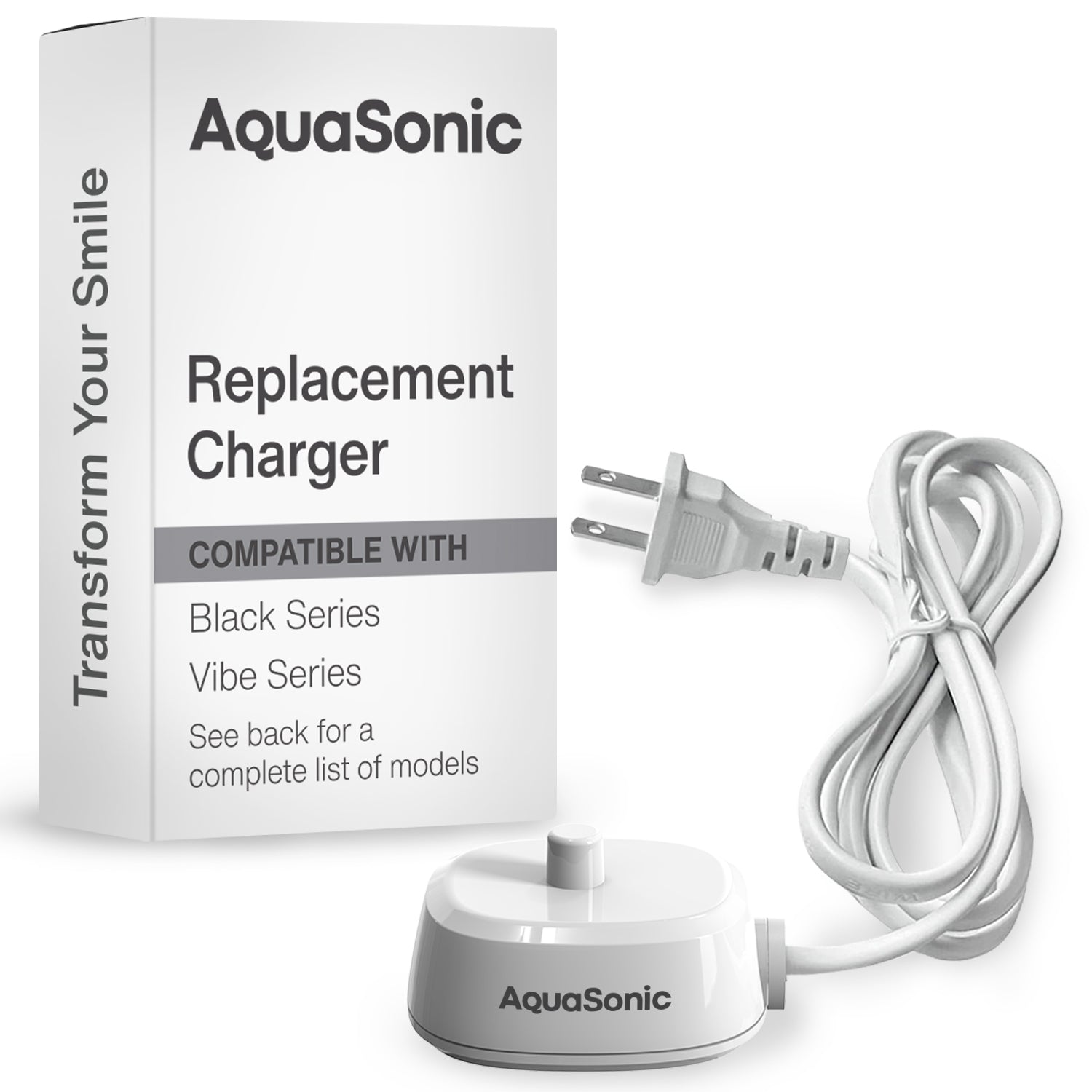 AquaSonic Charger: Replace the charge cord that came with your AquaSonic toothbrush, or keep an extra one on hand.