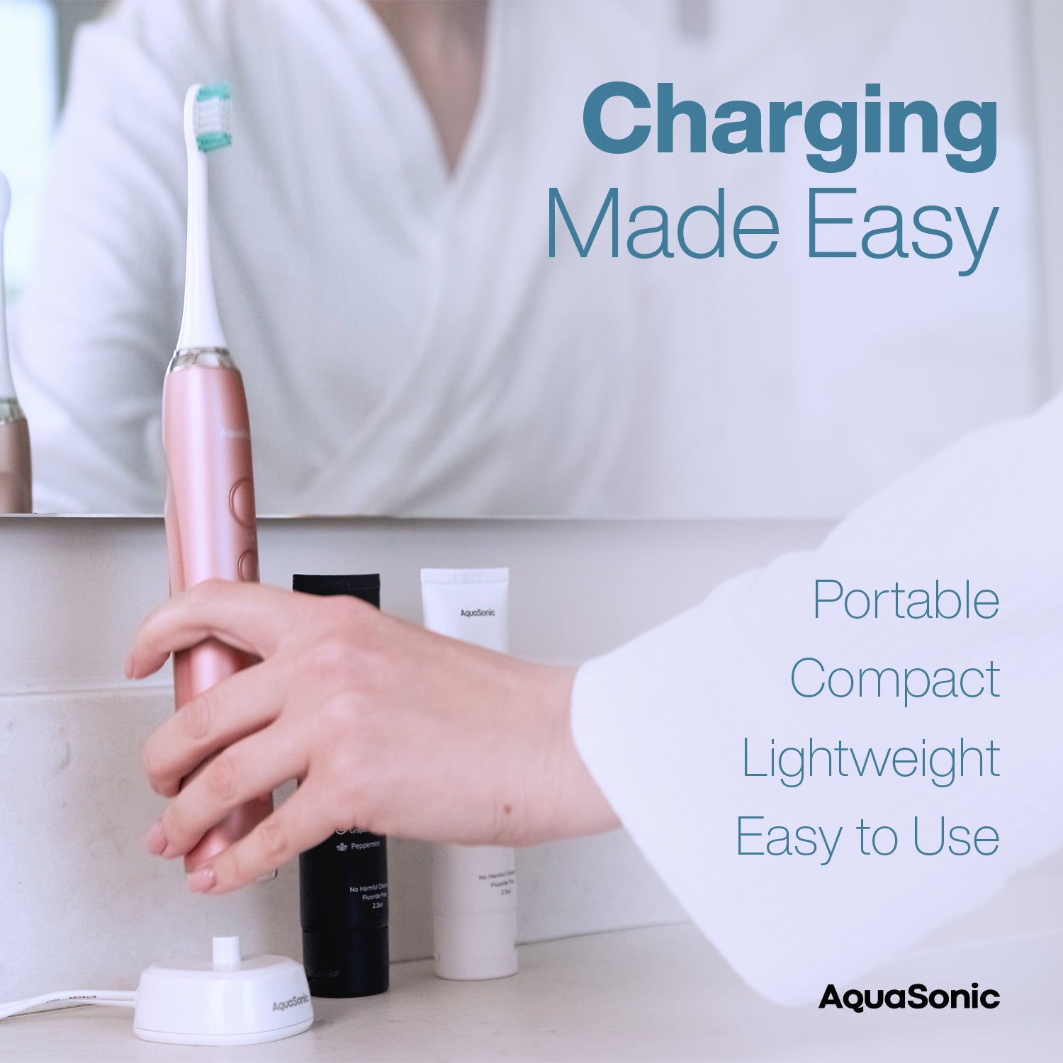 Effortless Conductive Charging: Advanced conductive charging technology ensures reliable power transfer to power up your AquaSonic toothbrush.
