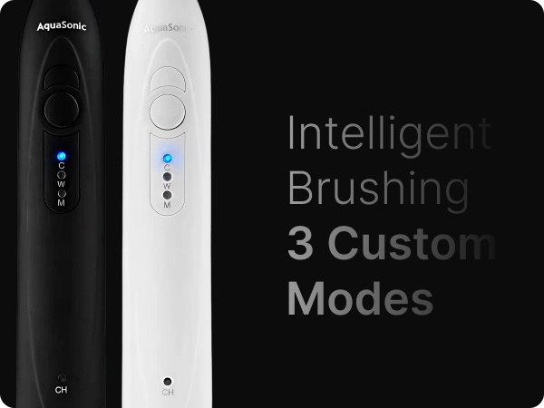 AquaSonic Duo provides complete oral care in one simple countertop setup. Duo features 2 modern smart toothbrushes with the latest oral care technologies including 40,000 vibration per minute motors, true wireless charging, 3 unique modes including modes for whitening teeth and gum health, 30-day battery life, in sleek midnight black and optic white brush handles. Duo Series comes with 12 additional accessories including 10 DuPont brush heads and 2 travel cases